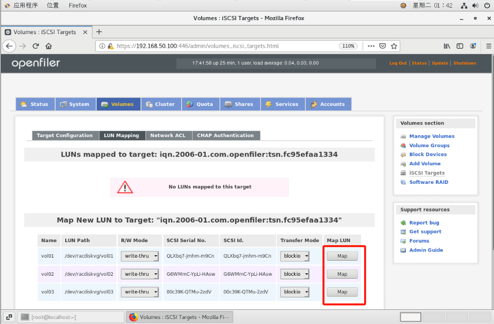 点击“LUN Mapping”,将vol01,vol02,vol03映射出来(点击Map)