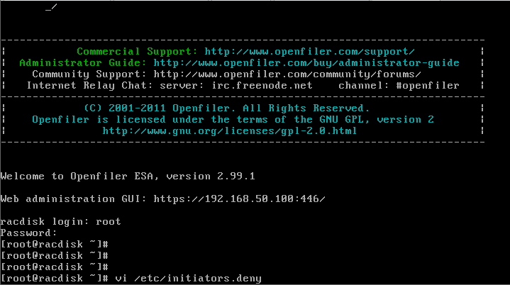 在openfiler的主机操作系统中执行vi /etc/initiators.deny