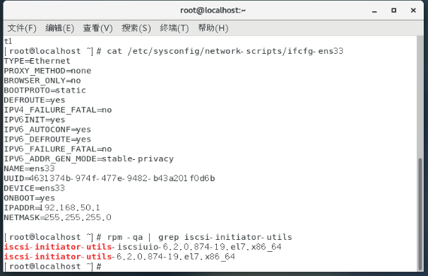 执行<font style="color:red;">rpm -qa | grep iscsi-initiator-utils</font>检测相关资源包是否存在