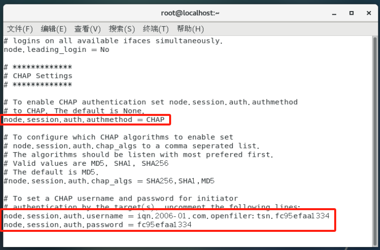 执行vi /etc/iscsi/iscsid.conf,username和password为第3步获取到的