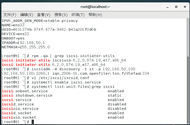 检查服务添加情况systemctl list-unit-files|grep iscsi
