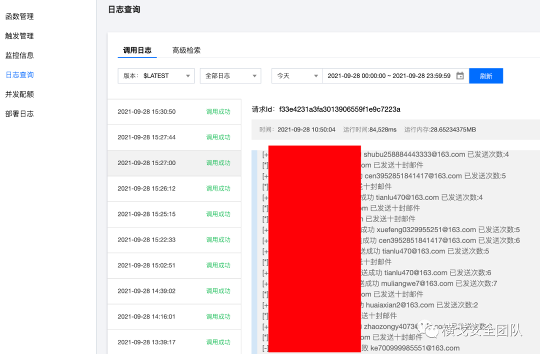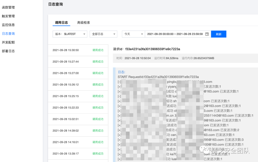 接下来就是脚本的出口IP问题了,经过测试,发现如果从同一个IP出口的话,发的邮件数量一多,可能后面的邮件全都被标记垃圾邮箱,或者你买的邮箱被封等等各种问题。所以这里选择了云函数去跑脚本。