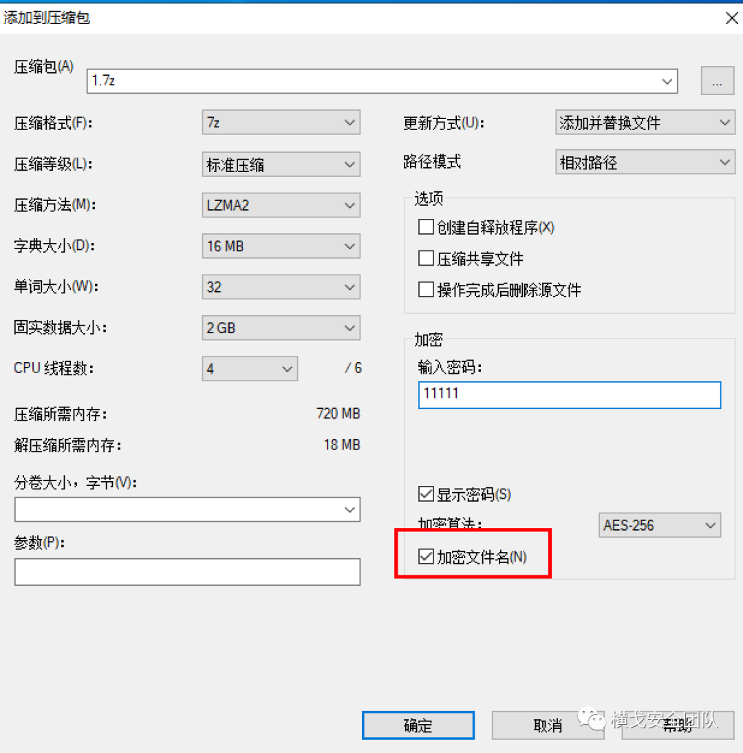 7z压缩,对文件名加密,这样打开压缩包的时候也看不到文件名