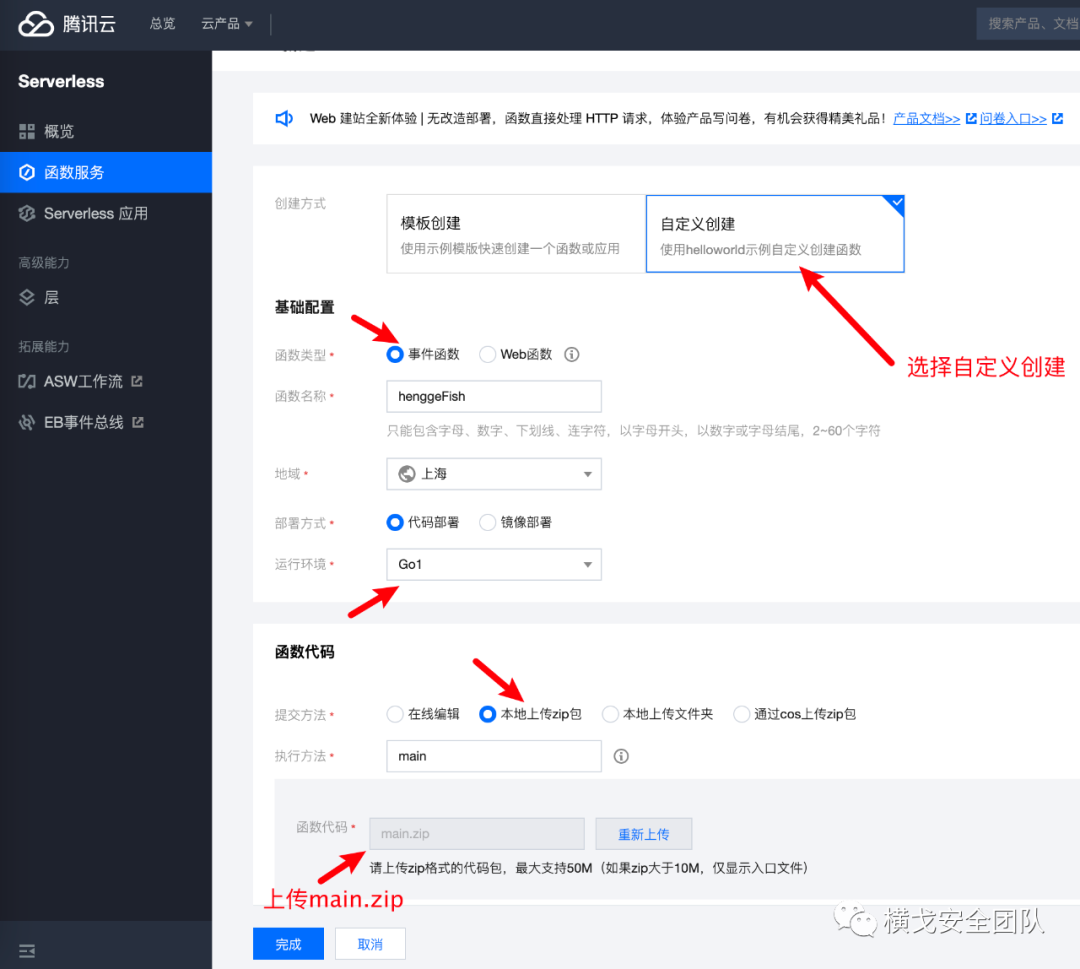 运行下面两行命令得到了main.zip文件。后面在云函数中需要上传main.zip