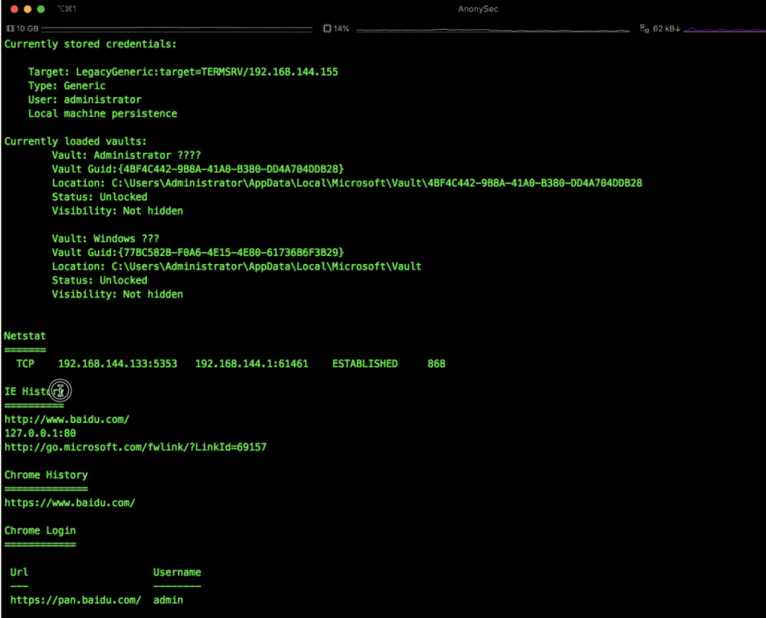 、Internet Explorer历史记录、Google Chrome历史记录与保存的密码。