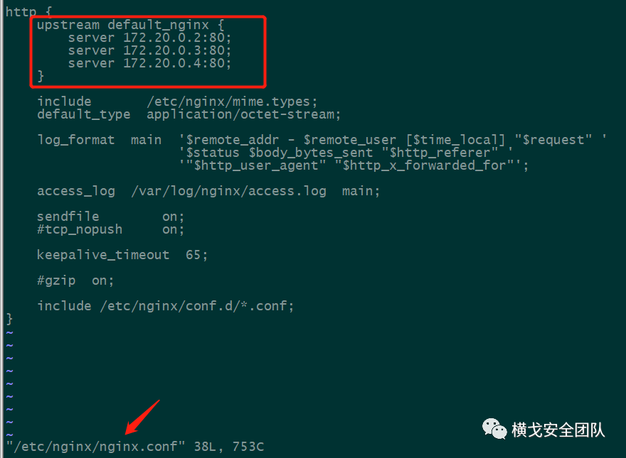 http {upstream default_nginx {server 172.20.0.2:80;server 172.20.0.3:80;server 172.20.0.4:80;}.....}