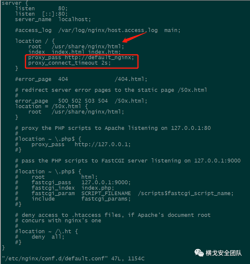 server {}......location / {......proxy_pass http://default_nginx;proxy_connect_timeout 2s;}......}