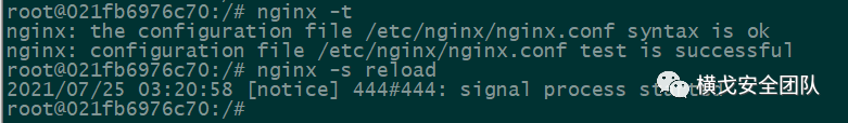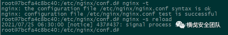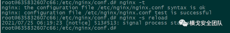 执行以下命令检查配置文件,然后重新加载nginx配置文件: