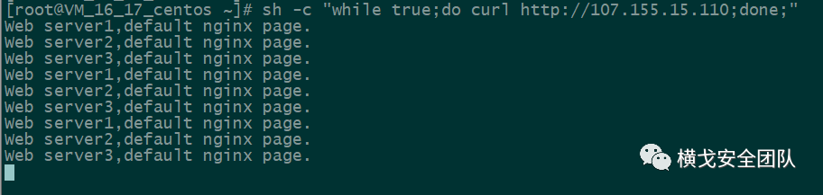 实验搭建成功,将我们的请求平均分配给后端的三台web服务器。