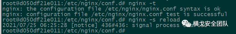 配置完成后检查配置文件,然后重新加载nginx配置文件: