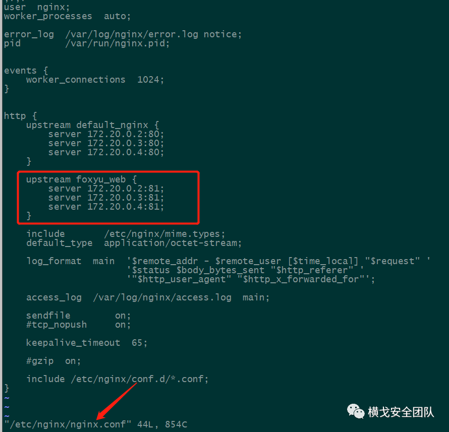 http {.....upstream foxyu_web {server 172.20.0.2:81;server 172.20.0.3:81;server 172.20.0.4:81;}.....}