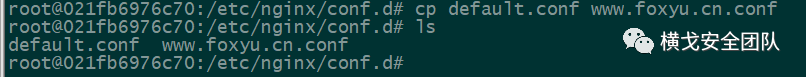 docker exec -it web2 /bin/bashapt-get updateapt-get install vimmkdir -p /var/www/htmlecho "Web server2,domain www.foxyu.cn!"> /var/www/html/index.html