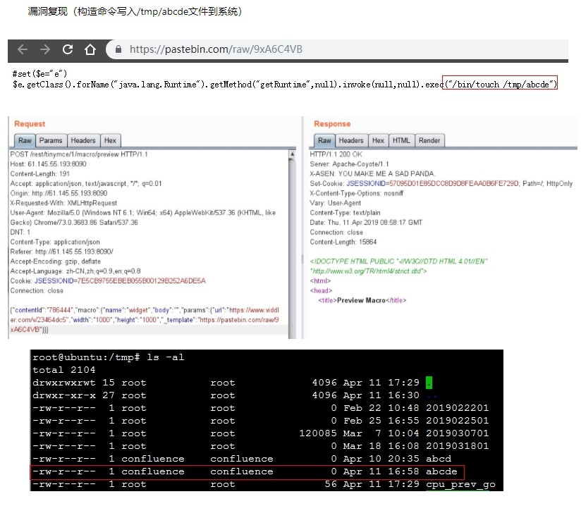 利用脚本地址为:https://raw.githubusercontent.com/Yt1g3r/CVE-2019-3396_EXP/master/cmd.vm