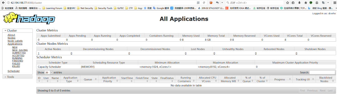 漏洞环境:https://github.com/vulhub/vulhub/tree/master/hadoop/unauthorized-yarn