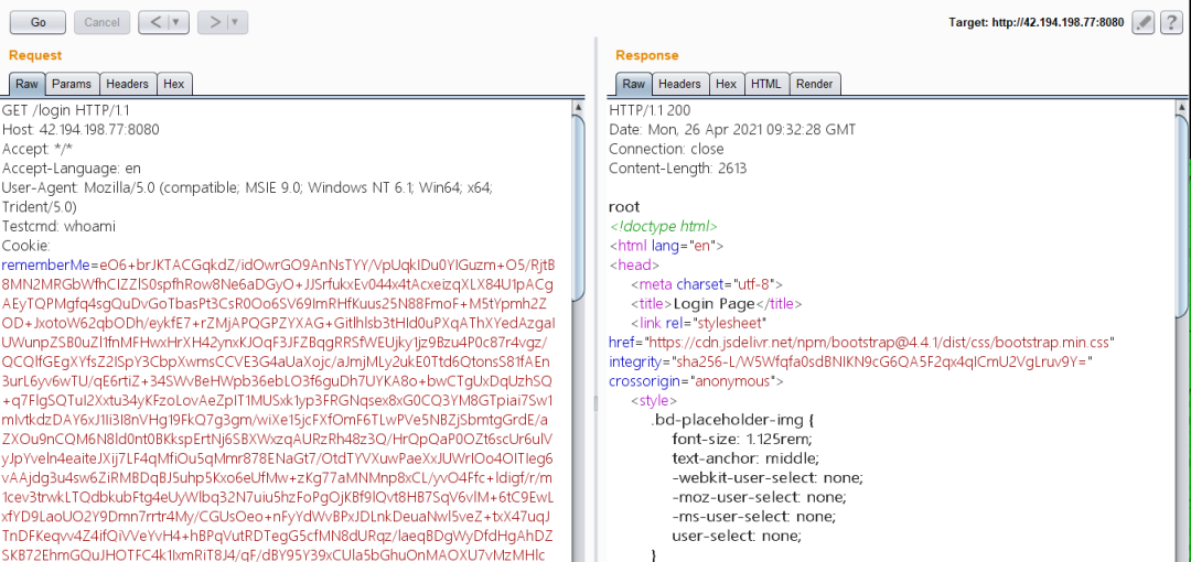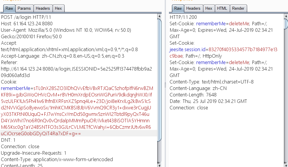 首先还是抓登录包,判断是否有 rememberMe=deleteMe;