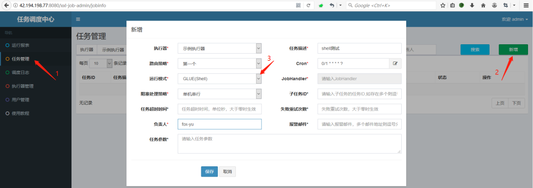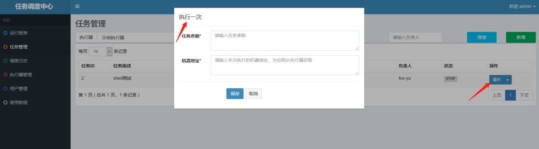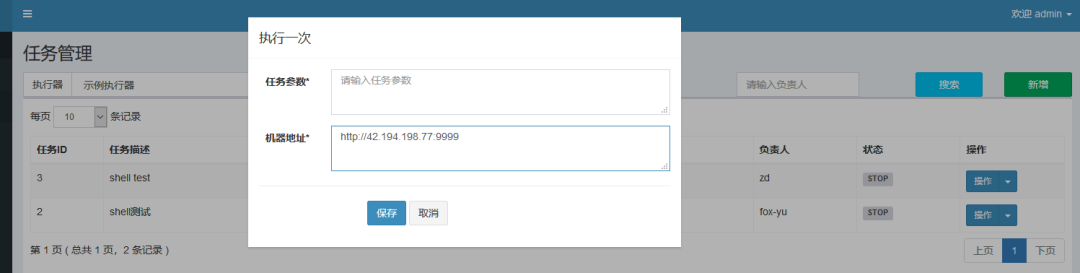 执行任务的时候,如果没有输入机器地址,默认是对所有机器,如果要指定客户端执行,可以输入客户端IP,需要加上http或者https,执行器默认端口为9999: