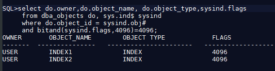 select do.owner,do.object_name, do.object_type,sysind.flags