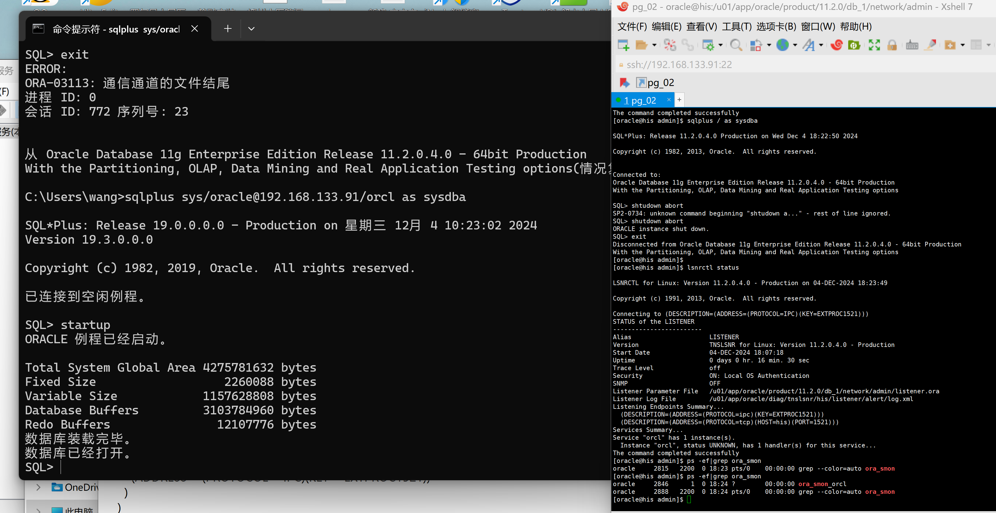 案例1:静态监听创建后通过远程链接支持启停数据库。