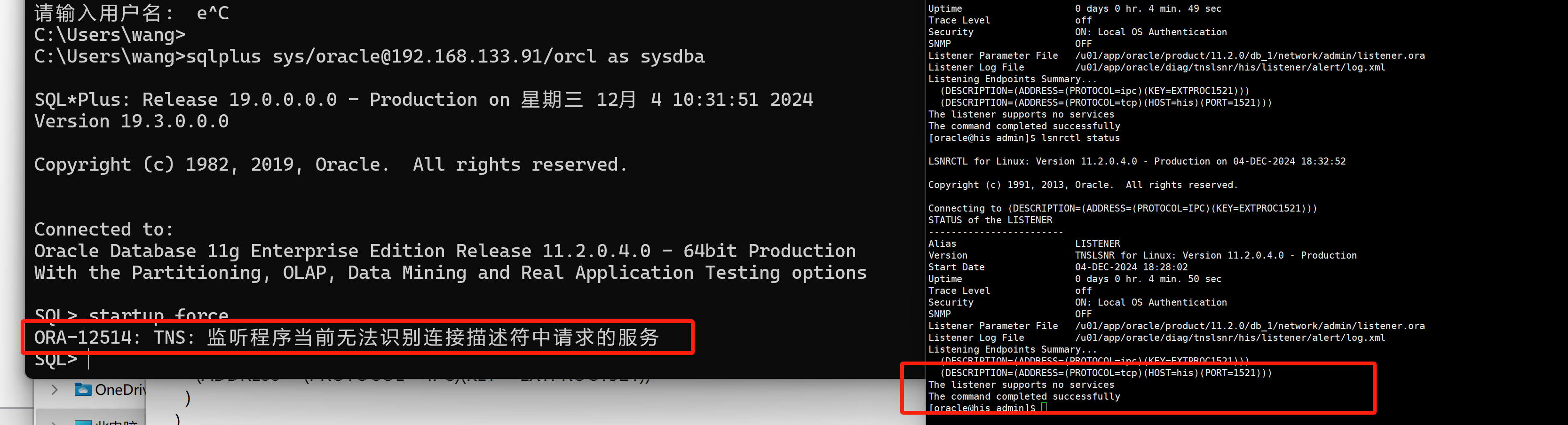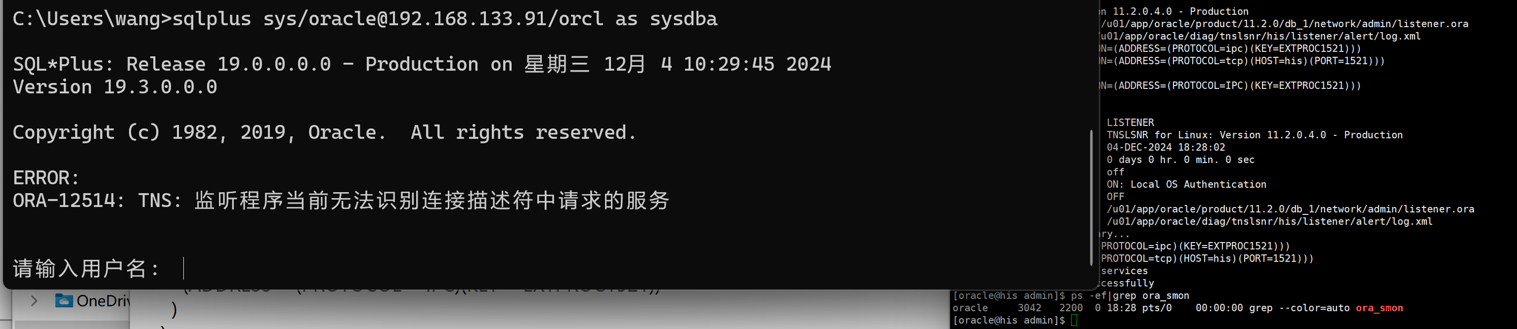 --此时外部的sqlplus是无法链接进来的。就出现了比较经典的问题,ora-12514