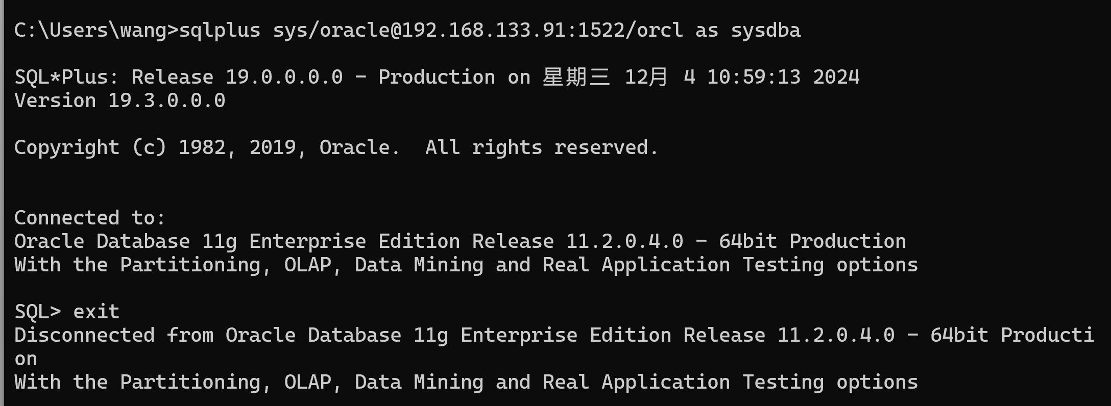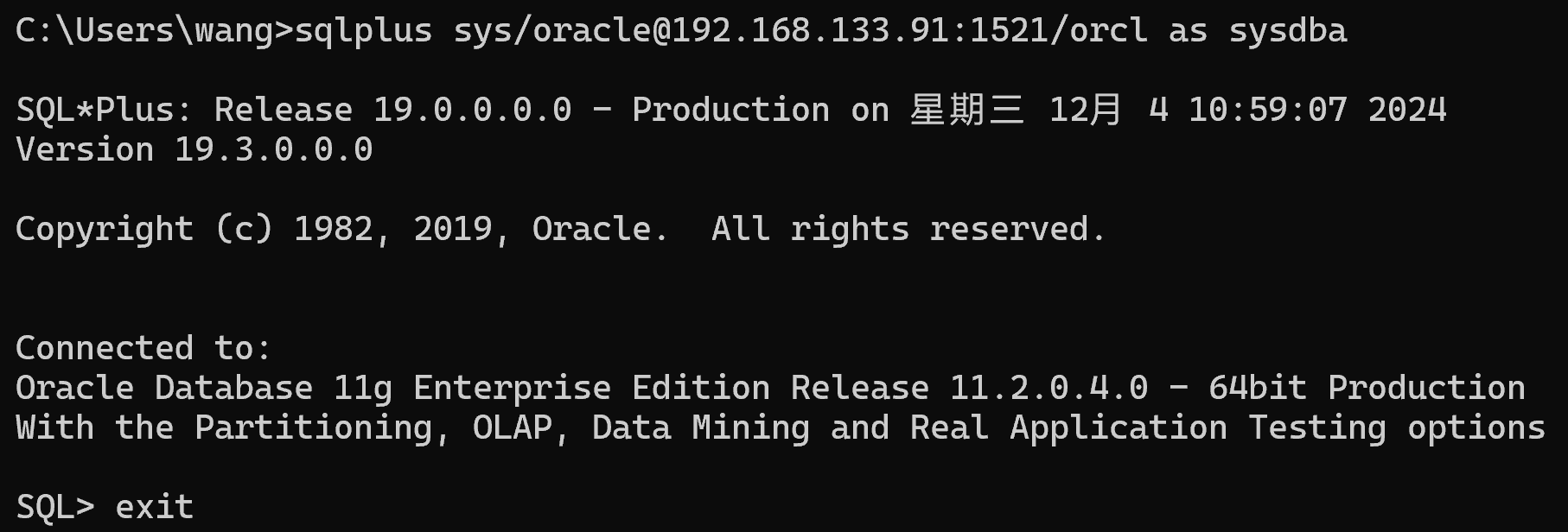 SQL*Plus: Release 11.2.0.4.0 Production on Wed Dec 4 18:54:35 2024
