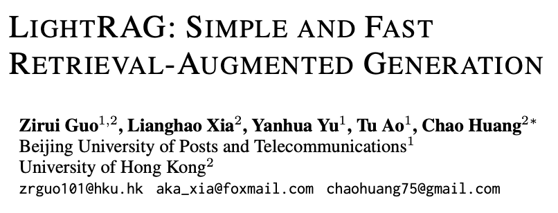 论文题目:LightRAG: Simple and Fast Retrieval-Augmented Generation