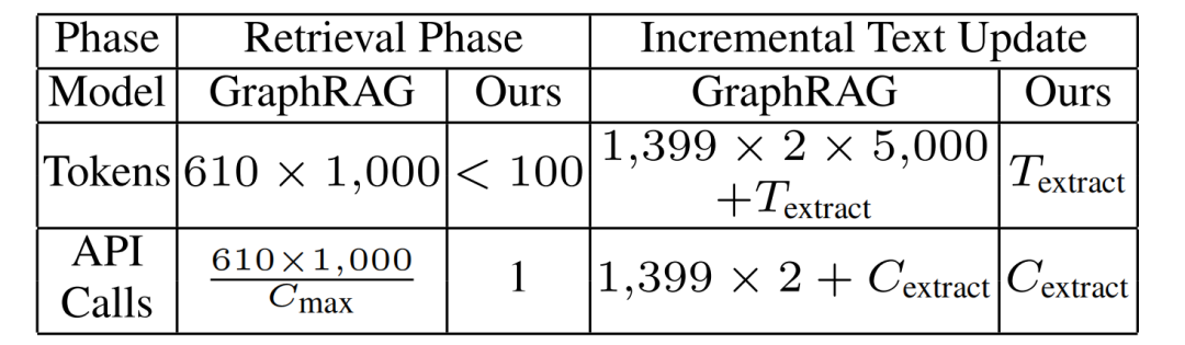 在检索阶段,GraphRAG 需要生成大量社区,并逐一遍历进行检索,导致了高昂的 token 消耗和频繁的API调用,效率较低。相比之下,LightRAG 采用了高效的检索机制,通过整合图结构和向量表示,只需少量 token 即可完成关键词生成和检索,且整个过程仅需一次 API 调用,显著降低了资源消耗和调用频率。