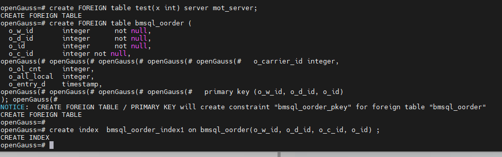 create FOREIGN table bmsql_oorder (o_w_id integer not null,o_d_id integer not null,o_id integer not null,o_c_id integer not null,o_carrier_id integer,o_ol_cnt integer,o_all_local integer,o_entry_d timestamp,primary key (o_w_id, o_d_id, o_id));