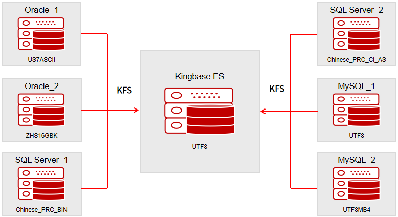 项目中,源端涉及Oracle、SQLServer、MySQL等多种数据库以及多种不同的字符集编码。目标端为KingbaseES数据库,使用UTF-8编码格式。