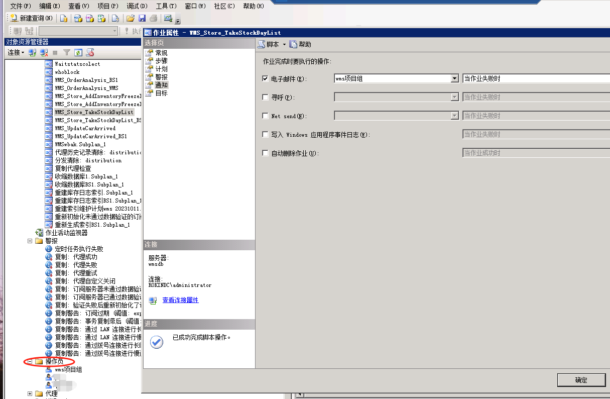 指定的 '@notify_email_operator_name' 无效(有效值由 sp_help_operator 返回)。