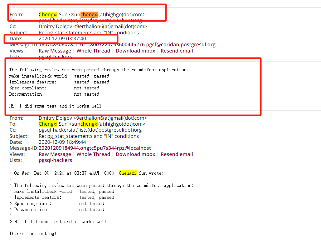 图:瀚高股份韩伟博、王大鹏作为PostgreSQL使用者遇到Bug反馈社区