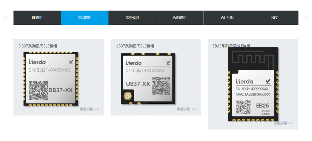 利尔达作为星闪联盟的重要成员单位,更是首家提供星闪模组的厂商,目前已有DB37系列、UB36系列、EB25系列星闪SLE模组,其中EB25系列星闪SLE模组获得“星闪首款模组纪念”认证。