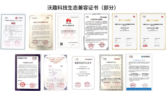 自一体机产品发布以来,沃趣科技已经与多家上下游生态伙伴完成了生态兼容互认,包括华为、英特尔、超聚变、中科曙光、浪潮、ZStack、忆恒创源等在内的芯片、操作系统、服务器、数据库周边软硬件厂商,共同为企业用户提供高效能的数据库基础设施,支持企业业务安全、高效、稳定运行。