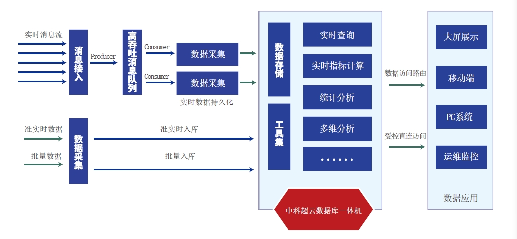 利用实时流处理工具(如 Kafka、Flink 等)进行多源数据接入,将业务数据、日志数据等快速写入数据库一体机。