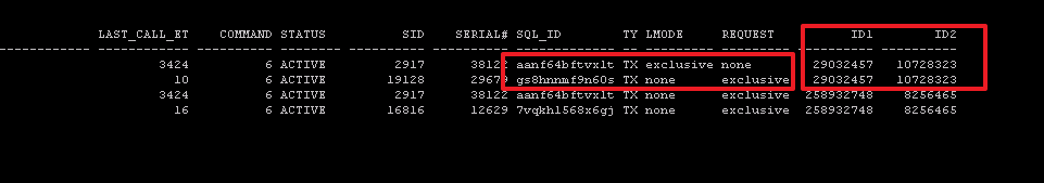 今天上午在查询行锁的事后发现v$lock的id1和id2,阻塞的和被阻塞的会话一样,这能说明什么?