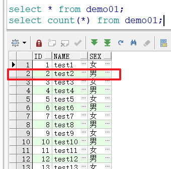 构造行锁,修改id=2的行数据id:2 name:test2 sex:男