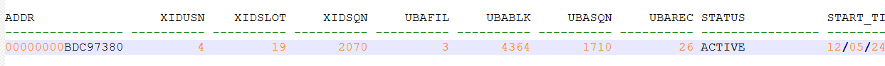 select * from v$transaction where xidusn=4 and xidslot=19 and xidsqn=2070;