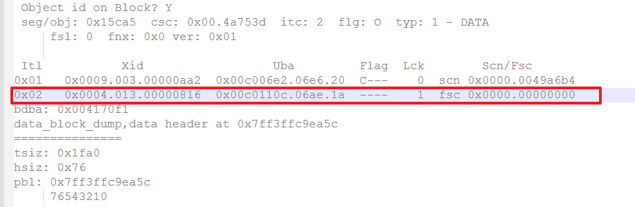 后面说计算,这三个记录在数据块的 ITL,相对应的还有被修改数据的前镜像uba(回滚段地址)