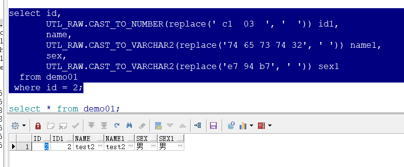 通过UTL_RAW转化一下,就可以看到被锁住的表的行数据了