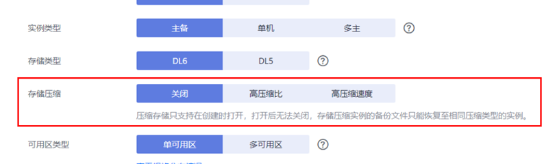 第一种创建新实例的方式,如图1所示,需要通过选择“存储压缩”选项开启。