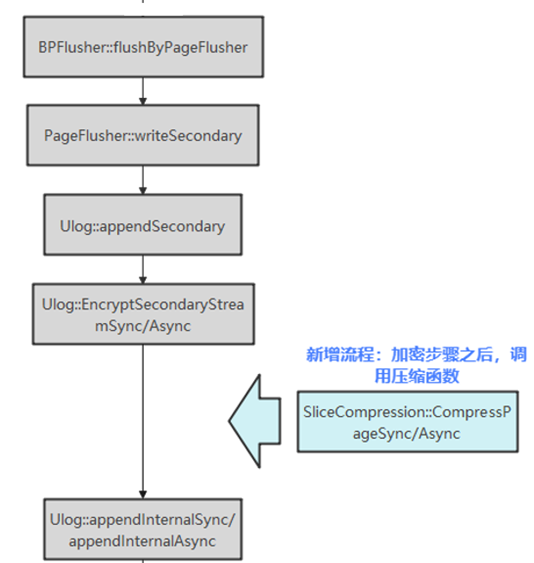 在数据需要刷新到页上时,系统会调用flushByPageFlusher函数。该函数的底层实现是通过Ulog对secondary stream进行append操作,同时对页进行压缩处理,从而实现页级别的压缩能力。Ulog是TaurusDB存储底层提供的IO模型,它构成了数据库的数据存储单元。而secondary stream实际上是由Ulog组成的,它存储着数据库页面基本结构的信息。通过解析Ulog后的压缩字段,可以判断页面是否已被压缩,以及具体采用了哪种压缩方式。