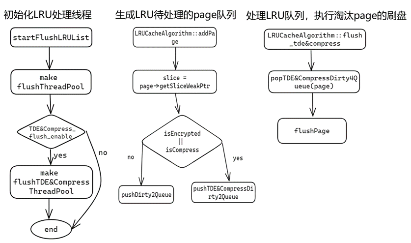 2)当LRU页面需要被置换并且需要落盘时,会调用addPage方法,将需要压缩的页面放入压缩线程池队列compressDirty2Queue中,并有序地进行压缩操作。