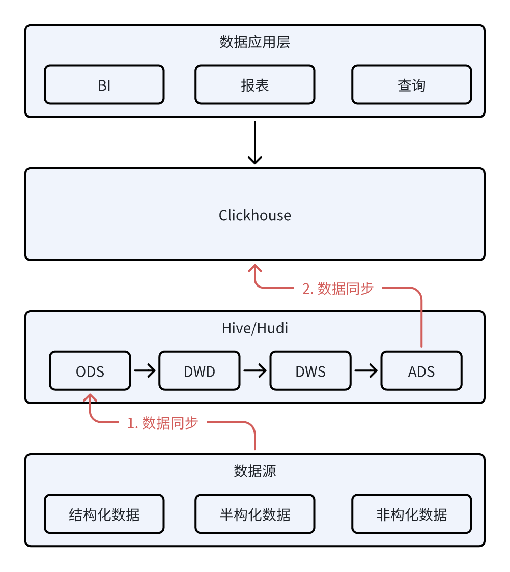 资源占用:to ClickHouse 过程也会占用 ClickHouse 集群资源,不仅体现在 Clickhouse 中数据同步系统的资源消耗,且在数据写入后,ClickHouse 内部也有 Compaction 等计算资源的消耗,在高并发查询的时候,并行读写带来更显著的资源抢占问题,可能影响其他查询任务的执行效率和集群的整体性能。 治理复杂:数据工程师需要投入大量人力建立 ADS 层模型,以支持 to ClickHouse 导入工作,并需要投入额外的精力维护导入任务。此外,当报表看板下线后,对应 ADS 层和 to ClickHouse 任务还在运行,造成计算和存储资源的不必要浪费,大部分情况下需要依赖人工介入判断并终止这些任务,这无疑增加了运维管理的复杂度。