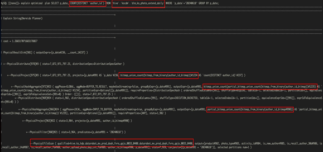 author_id指标进行去重的外表查询的改写结果示例。可以看到 Doris 将