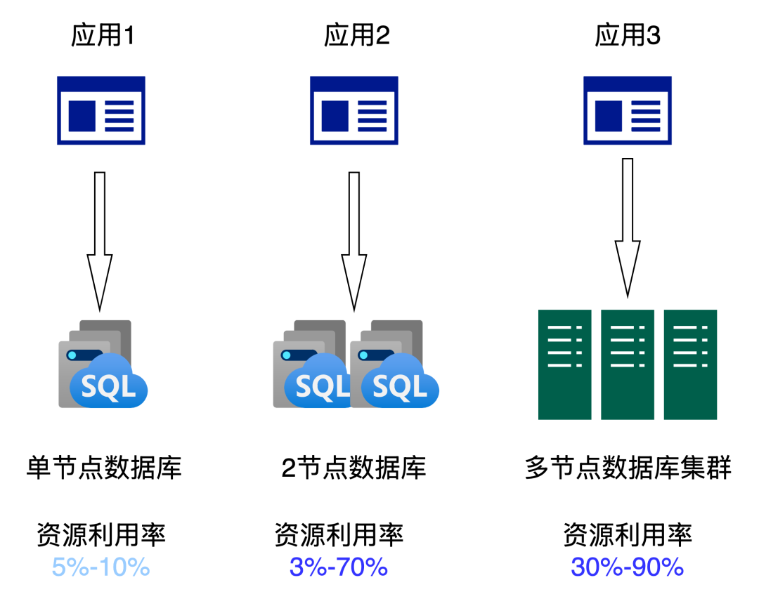 数据库使用成本高:每一个业务应用都需要一套独立的数据库,部署时需要 3-6 台物理服务器;部署过程无法白屏化一键操作,仍需要人工复核和定位部署过程中出现的各类问题; 单独为业务系统建设数据库,不符合成本效益,同时形成多个数据孤岛;同时带来资源利用率低问题:每个业务对应的数据库集群利用率不同,无法合理利用同一套硬件资源,造成明显的资源浪费; 业务上线、变更速度慢:通常采用物理机部署的形式来为某个业务应用提供数据服务。基础架构团队每次都需要部署物理机,如果考虑容灾备份的需求,工作量极大,资源交付速度很慢,通常是以“天”为单位;上线后如果需要数据库扩容、调整架构等,面临相同问题 运维管理难度高:依赖管理员经验、手工命令,无法满足运工作标准化和自动化要求