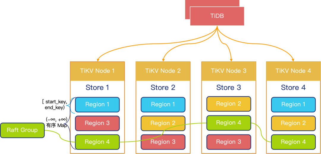 Multi-Raft 架构 - 以 Region 为粒度复制副本;