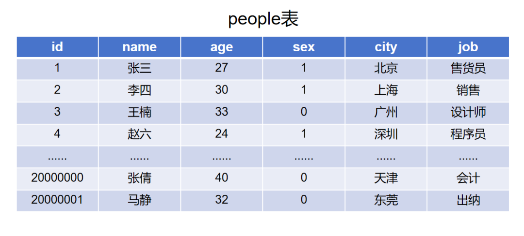 假设这样的一个业务场景,一张有2000多万条记录的people表,我们需要计算出表中所有人的平均年龄。