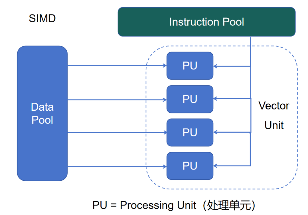 向量化执行引擎可以对一组数据执行相同的一个指令,在访问速度最快的寄存器层面实现单指令、多数据(SIMD )操作,以实现空间上的并行。
